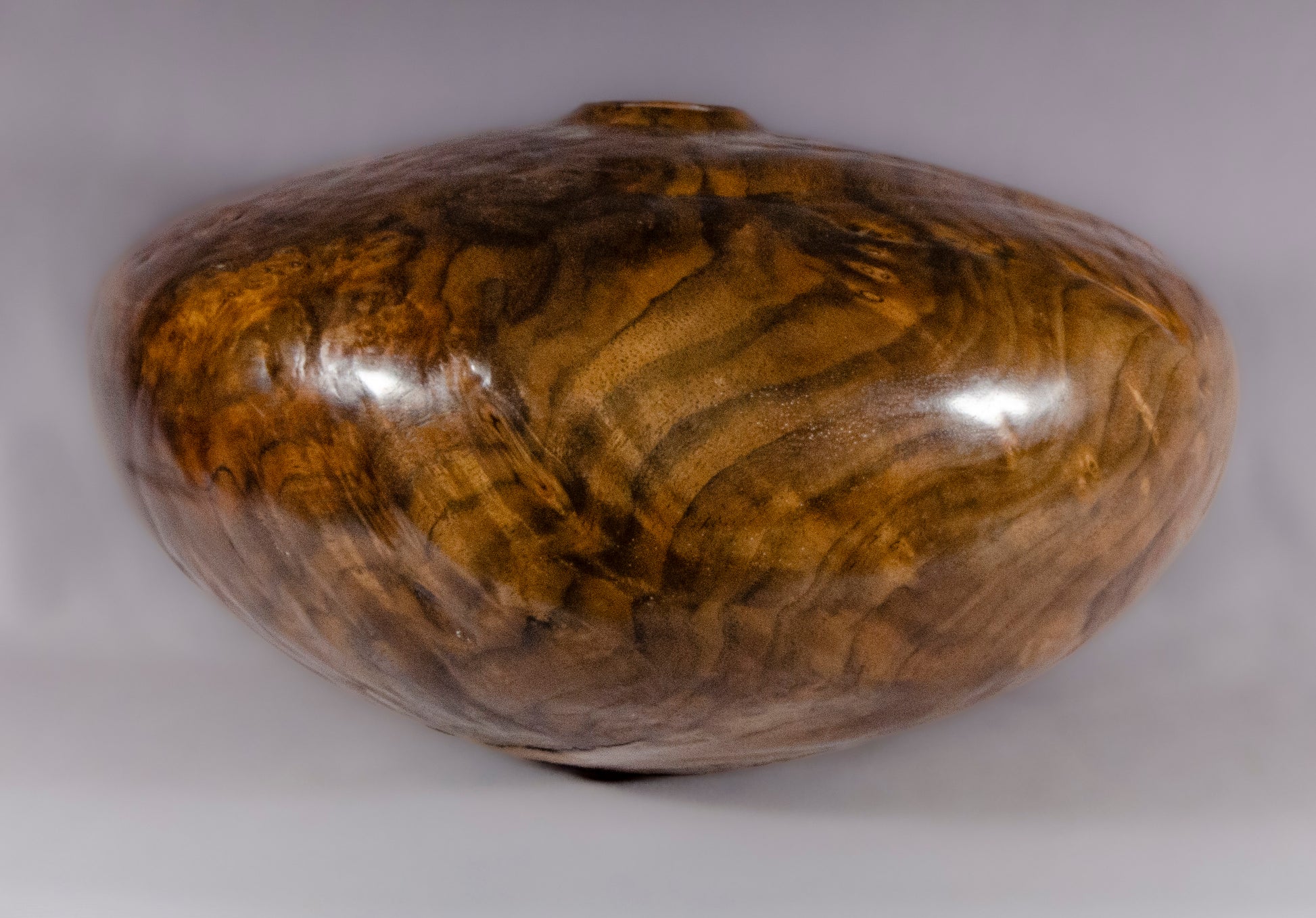 It is 10” x 5.5” and the natural drying process has resulted in a wavy texture on the surface and slight warping overall, providing this piece with abundant character beyond the magical burl grain.
