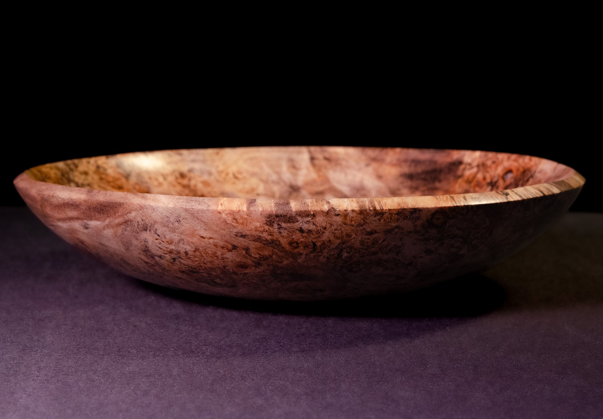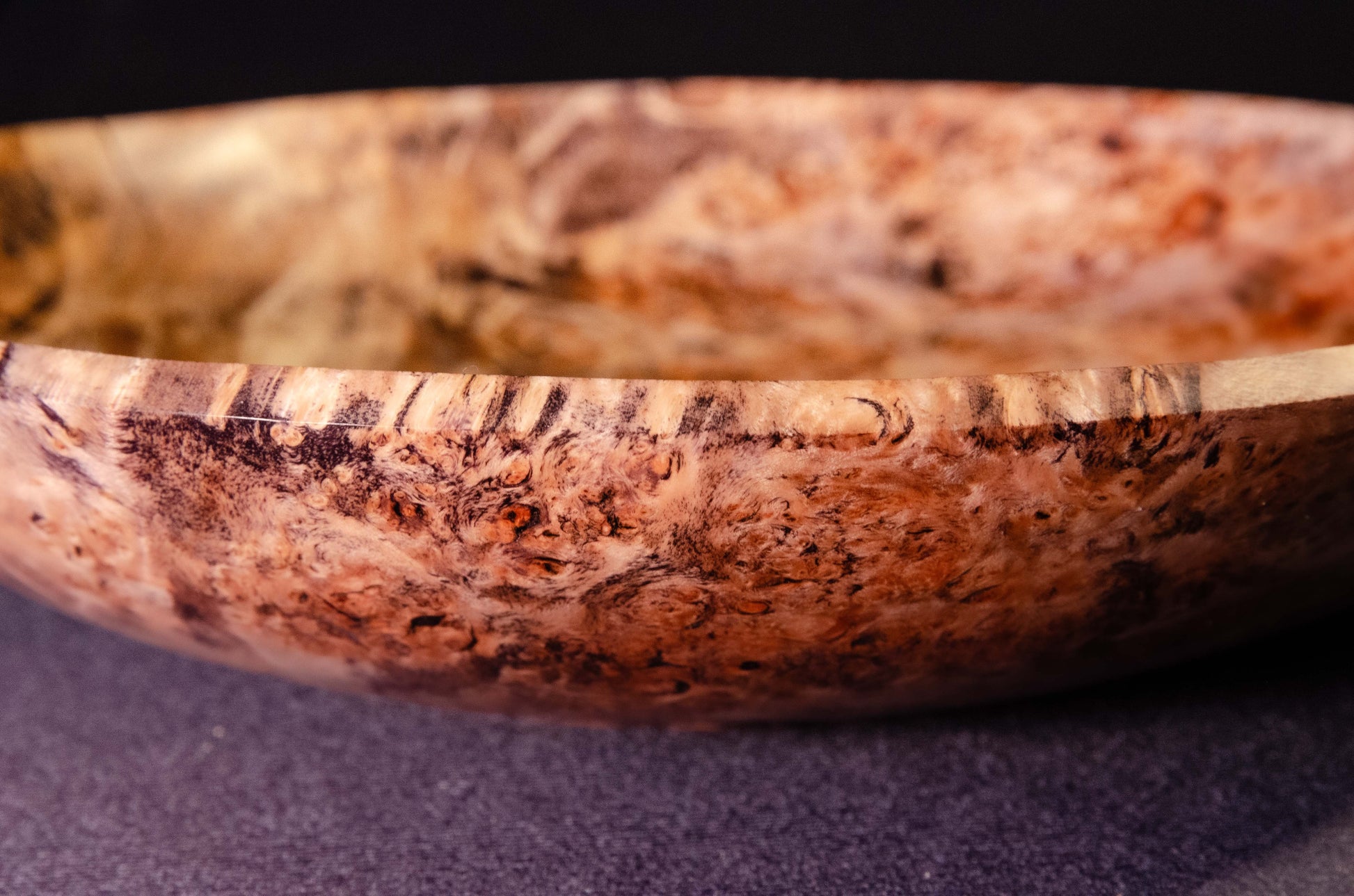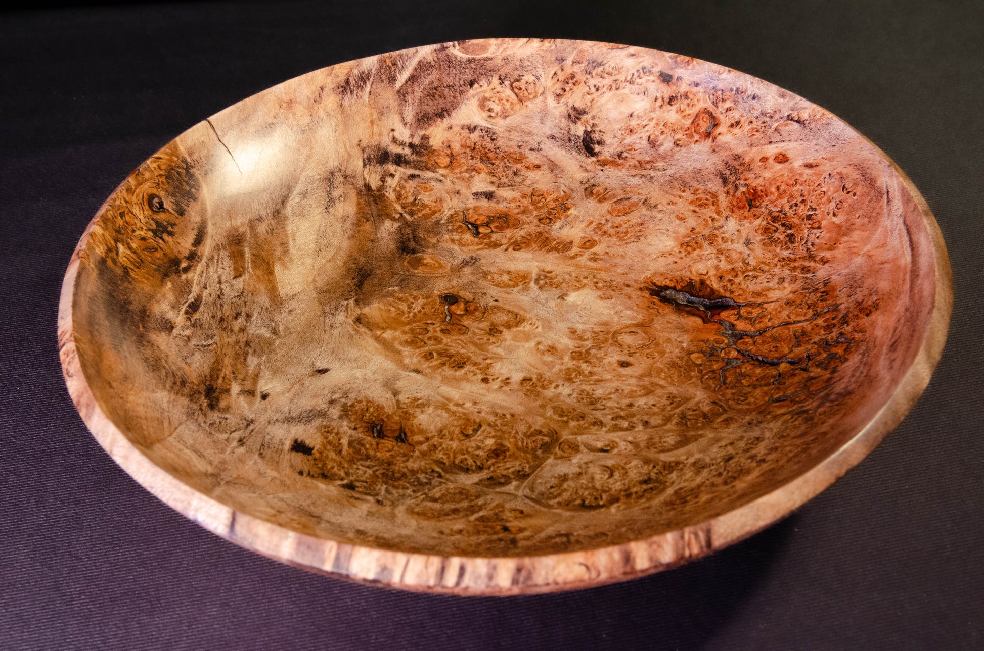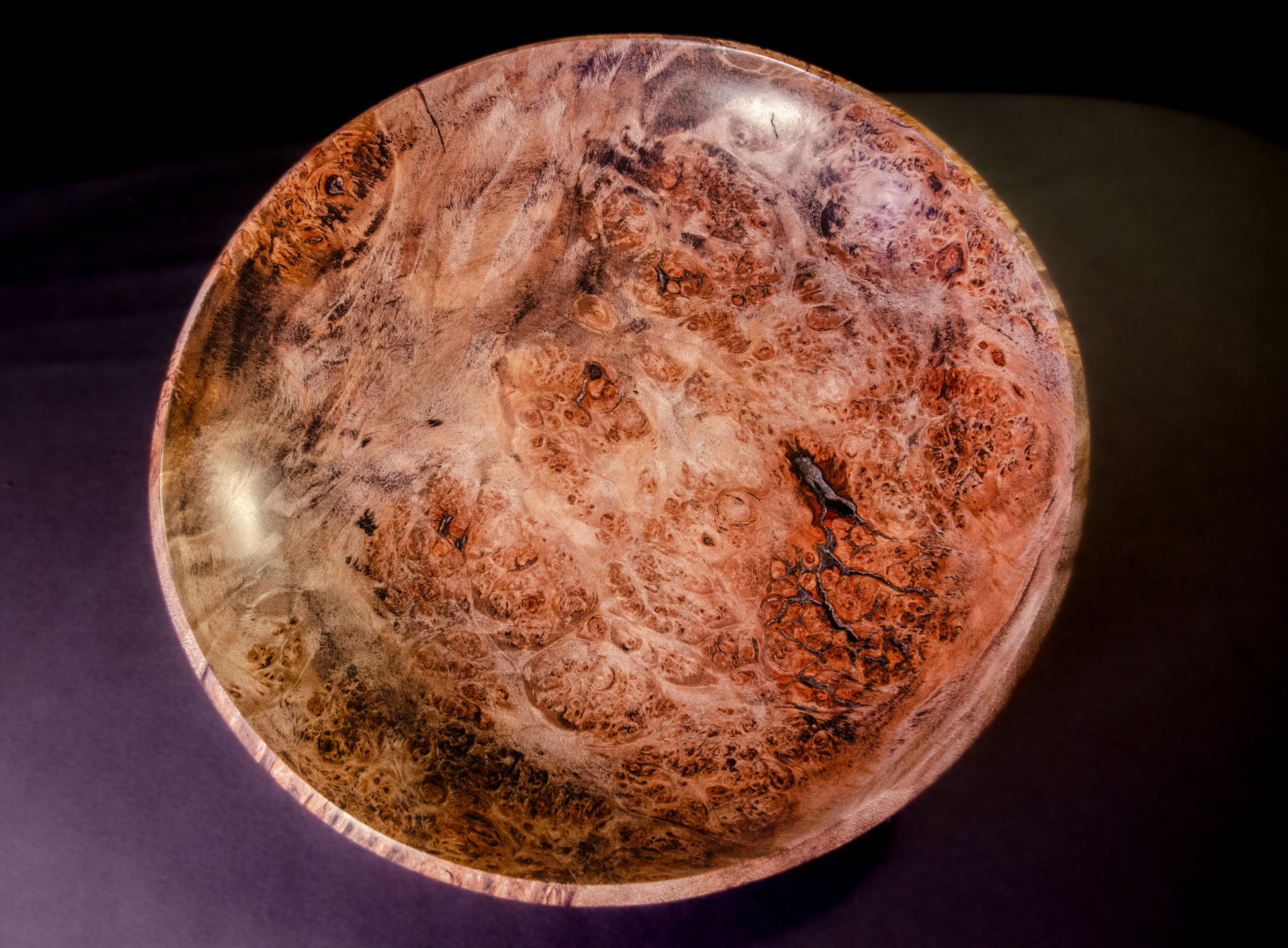 This bowls brings the wonder of a burl into a delightful form. The bowl is 7.25" across and 1.5" high, and would serve as a candy dish, nut bowl or other similar uses. But, don't cover up the inside of this bowl for long; this piece calls for attention with its wild burl grain patterns and wide tonal range. The bowl is finished with food safe oils and wax so it can be put to everyday use. It is signed on the bottom by the artist.